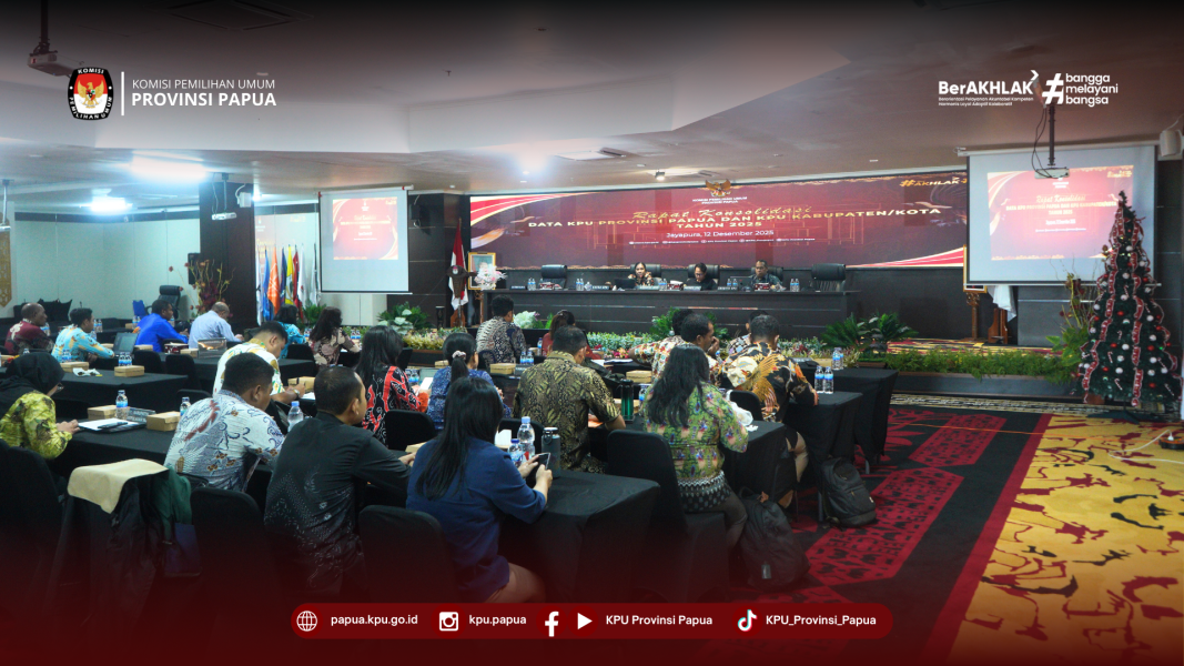 #Temanpemilih, Komisi Pemilihan Umum Provinsi Papua melaksanakan Rapat Konsolidasi Data bersama KPU Kabupaten/Kota dalam rangka persiapan Rapat Pleno Rekapitulasi Pemutakhiran Data Pemilih (PDPB) Semester II Tingkat Provinsi Papua, Jumat (12/12/2025). Kegiatan yang dilaksanakan di Lantai.4 Gedung KPU Provinsi Papua, diikuti oleh Kordiv Rendatin, Kasubag Rendatin, dan Operator Sidalih 9 KPU Kabupaten/kota se Papua ini, dibuka oleh Ketua KPU Provinsi Papua, Diana Simbiak. Didampingi oleh Kadiv Rendatin Amijaya dan Kadiv Hukum dan Pengawasan Yohannes Fajar I. Kambon, Diana berpesan agar data yang dihasilkan adalah data yang valid, akuntabel dan dapat dipertanggungjawabkan. . . #KPUmelayani #KPUProvinsiPapua ....