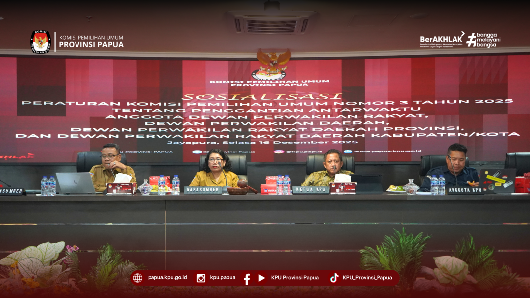 #Temanpemilih, KPU Provinsi Papua melaksanakan Sosialisasi Peraturan KPU (PKPU) Nomor 3 Tahun 2025 tentang Penggantian Antarwaktu (PAW) Anggota DPR, DPD, DPRD Provinsi, dan DPRD Kabupaten/Kota. Kegiatan tersebut berlangsung di Aula Lantai 4 Gedung Kantor KPU Provinsi Papua, Selasa (16/12/2025). Sosialisasi tersebut menghadirkan Badan Kesatuan Bangsa dan Politik (Kesbangpol) serta Sekretariat Dewan Perwakilan Rakyat sebagai narasumber, dan diikuti oleh perwakilan Partai Politik. Kegiatan ini bertujuan untuk memberikan pemahaman menyeluruh mengenai tata cara, prosedur, serta dasar hukum pelaksanaan PAW sebagaimana diatur dalam PKPU Nomor 3 Tahun 2025. Dalam kegiatan ini, KPU Provinsi Papua menekankan pentingnya ketepatan dan ketelitian dalam setiap tahapan proses PAW. Mulai dari verifikasi persyaratan calon pengganti, penerapan mekanisme afirmasi perempuan, pengelolaan dokumen Laporan Harta Kekayaan Penyelenggara Negara (LHKPN), hingga penanganan upaya hukum apabila terjadi sengketa internal maupun keberatan dari pihak terkait. Melalui sosialisasi tersebut, KPU Provinsi Papua mendorong seluruh Partai Politik agar dapat melaksanakan proses PAW secara profesional, terstandar, dan sesuai dengan ketentuan peraturan perundang-undangan. Hal ini penting guna memastikan pelayanan publik yang transparan, akuntabel, serta menjaga keberlangsungan fungsi lembaga legislatif di daerah. Kegiatan sosialisasi ditutup dengan harapan terjalinnya sinergi dan konsistensi kerja yang semakin kuat antara KPU dan Partai Politik dalam menjaga kelancaran proses PAW serta stabilitas kelembagaan legislatif di Provinsi Papua. . . #KPUmelayani #KPUProvinsiPapua ....