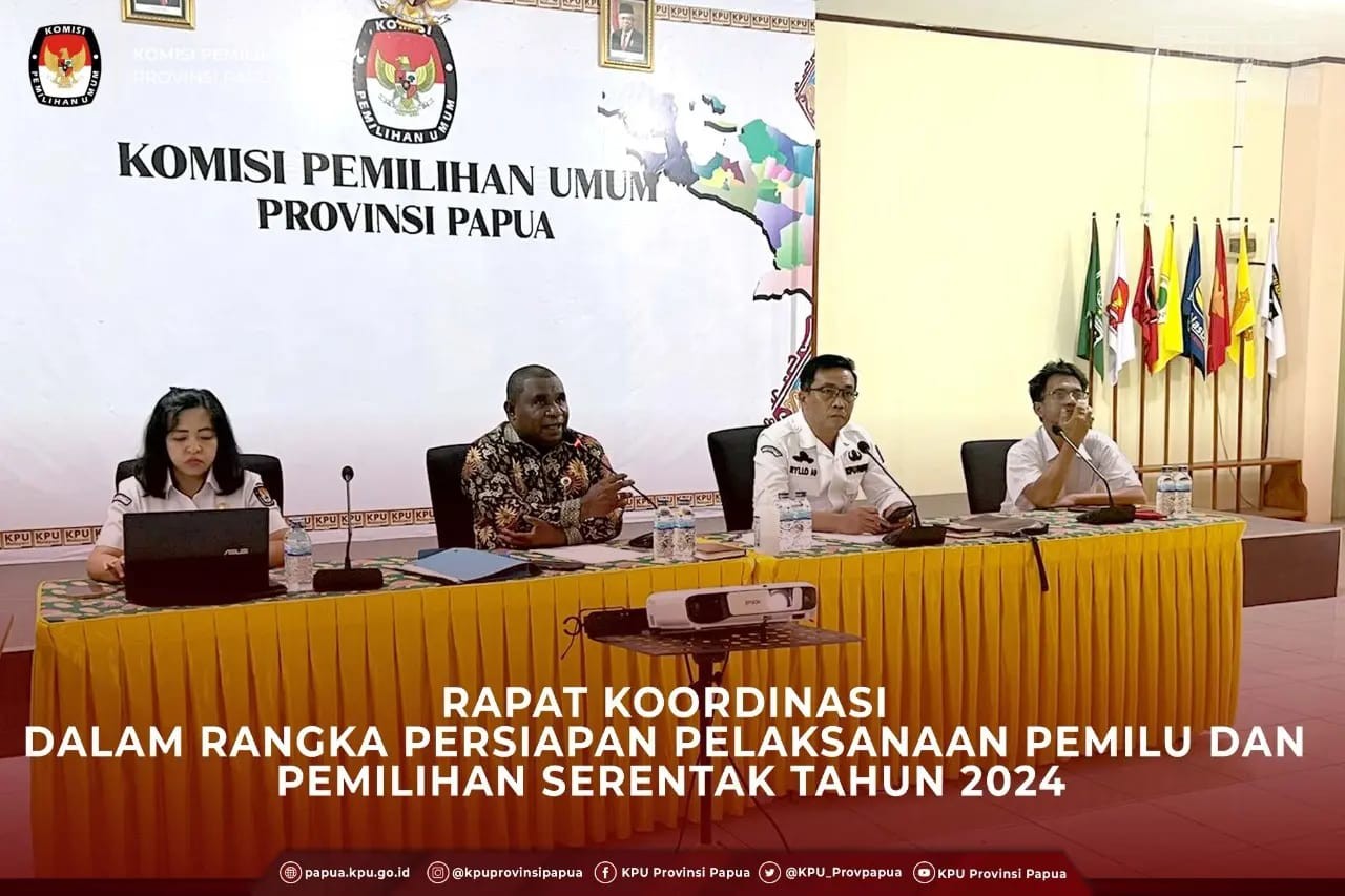 Asisten Deputi Bidang Koordinasi Pengelolaan Pemilu dan Partai Politik Brigjen TNI Haryadi menyampaikan bahwa kunjungan kerja ini untuk mendapatkan informasi dan masukan terkait kesiapan KPU Provinsi Papua dalam pelaksanaan Pemilu dan Pemilihan Serentak Tahun 2024.