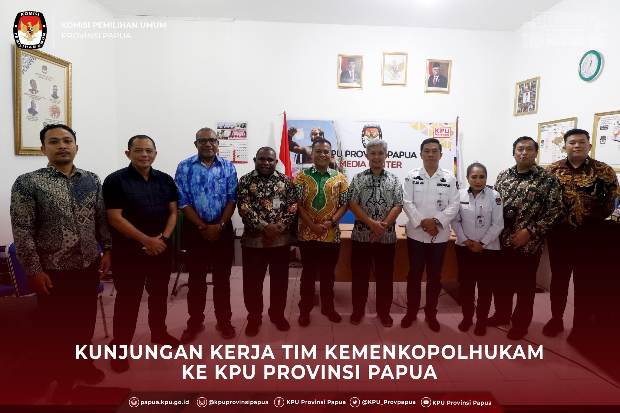 #TemanPemilih, Anggota Komisi Pemilihan Umum (KPU) Provinsi Papua Adam Arisoi, Melkianus Kambu dan Sekretaris Ryllo A. Panay menerima Kunjungan Kerja dari Tim Kemenkopolhukam di kantor KPU Provinsi Papua, Kamis (22/9).