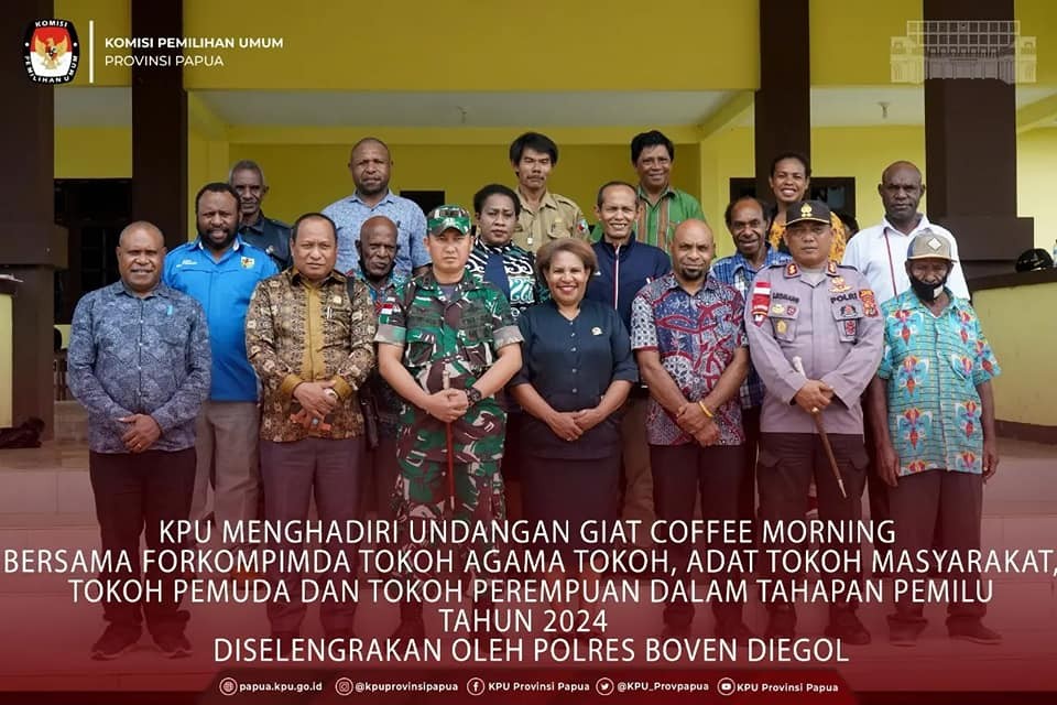 #TemanPemilih, Bertempat di ruang rapat Polres Boven Diegol, Anggota Komisi Pemilihan Umum (KPU) Provinsi Papua Divisi SDM Theodorus Kossay, dan Ketua KPU Kabupaten Boven Digoel beserta Anggota mengikuti kegiatan Coffee Morning yang diselenggarakan oleh Polres Boven Diegol, Selasa (06/09).