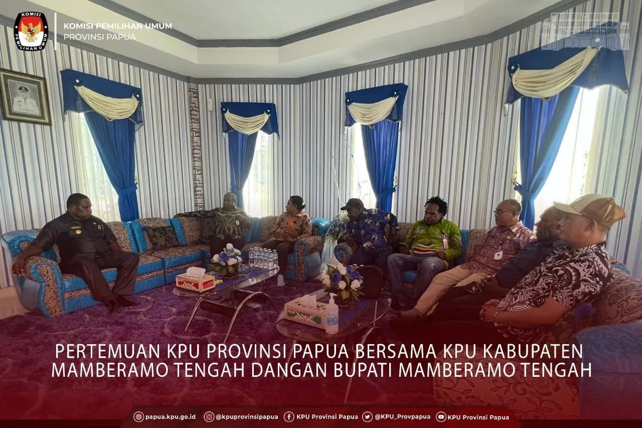 #TemanPemilih Komisi Pemilihan Umum (KPU) Provinsi Papua yang diwakili oleh Diana D. Simbiak bersama Ketua dan Anggota,Sekretaris dan Kasubag Keuangan Umum dan Logistik KPU Mamberamo Tengah bertemu dengan Bupati Mamberamo Tengah Yonas Kenelak, di kediaman Bupati, Jumat (16/09).