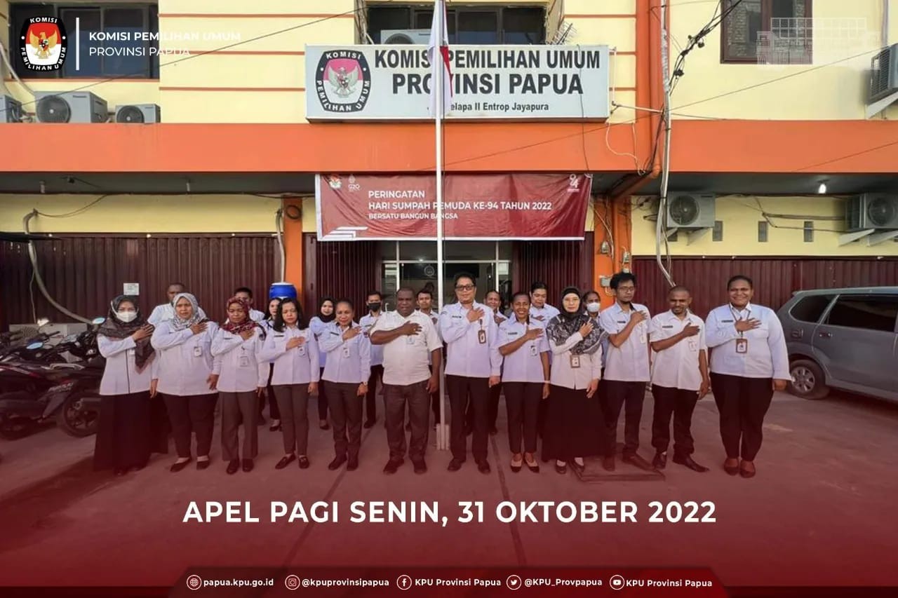 Hadir dalam kegiatan, Ketua KPU Provinsi Papua Diana D. Simbiak, Anggota KPU Provinsi Papua Fransiskus Letsoin, Theodorus Kossay dan Melkianus Kambu, Plh Sekretaris KPU Provinsi Papua Agusta Maniagasi serta Kordiv Hukum Datin Bawaslu Provinsi Papua Anugerah Pata.